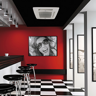 - Fan coils tipo caja para instalación en falsos techos suspendidos, con toma e impulsión de aire directamente del ambiente.